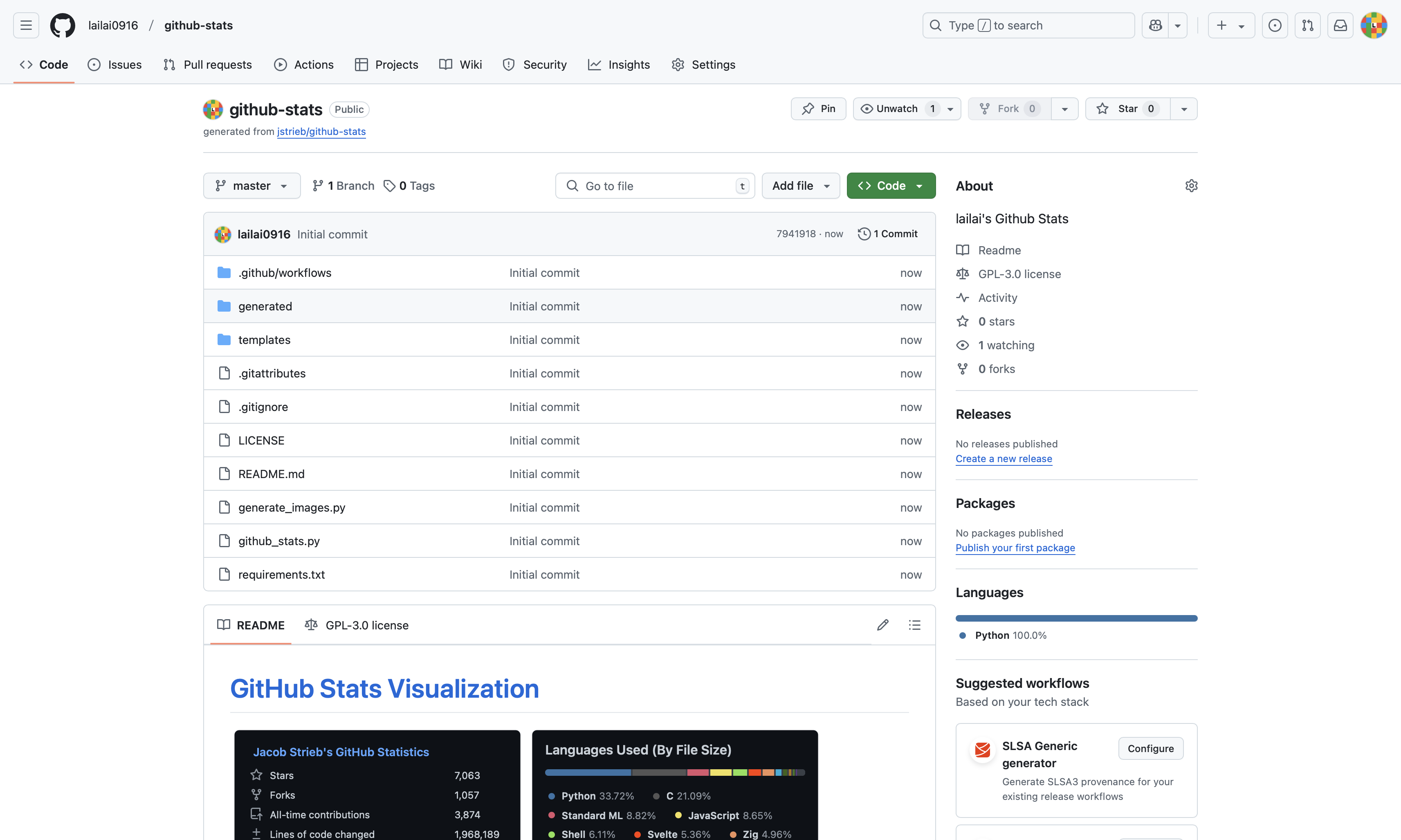 - 复制 GitHub Stats Visualization 的 GitHub 仓库。