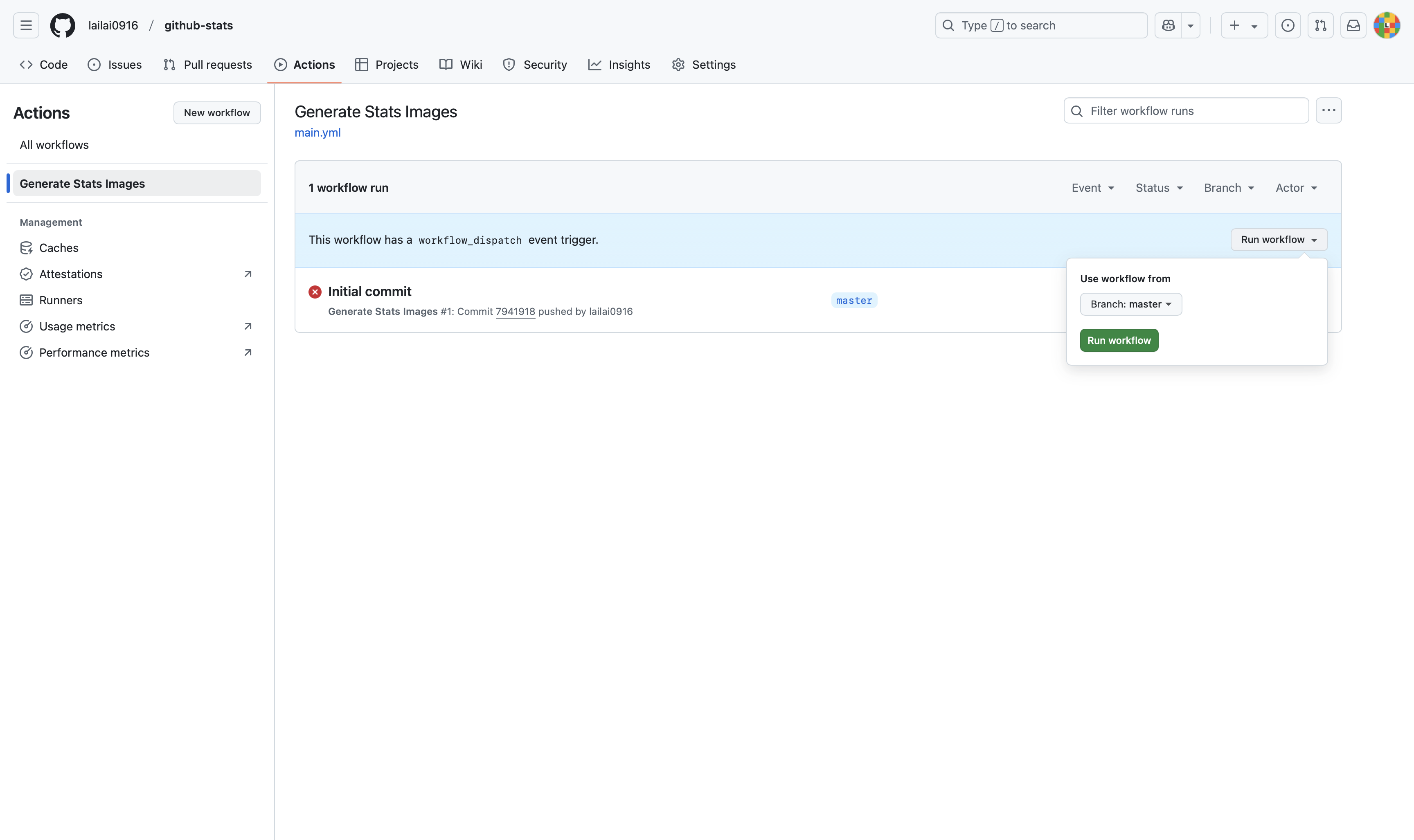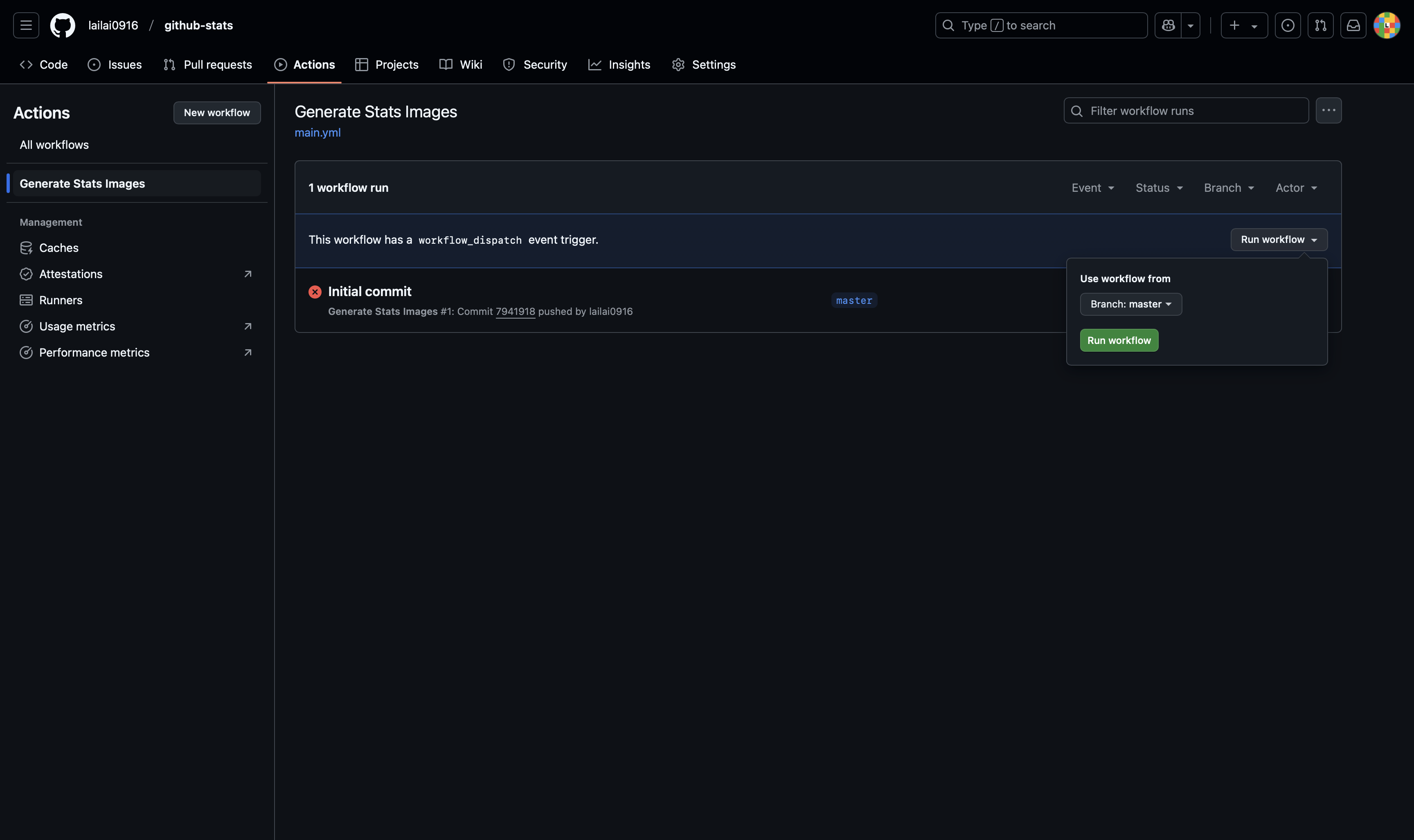 - 依次点击 Generate Stats Images Generate Stats Images Run workflow。